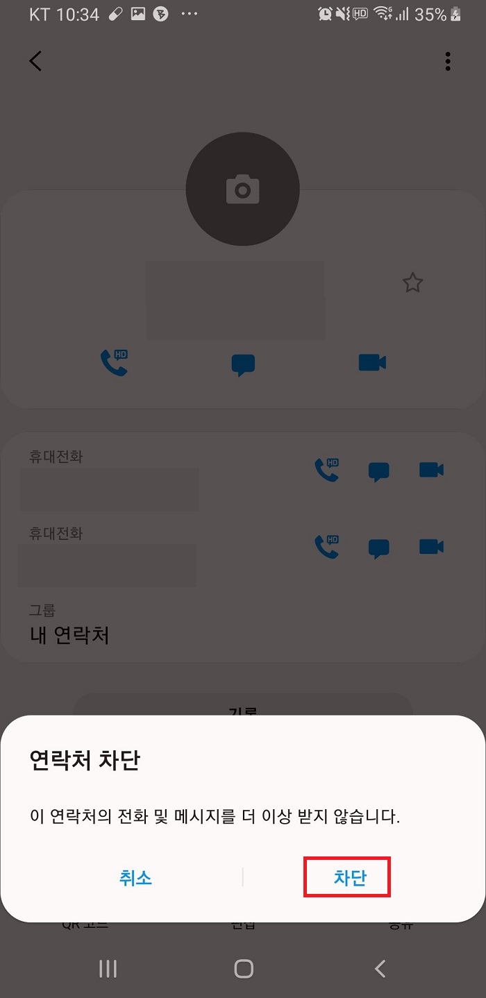 같은 방법으로 연락처차단을 선택하면 됩니다.