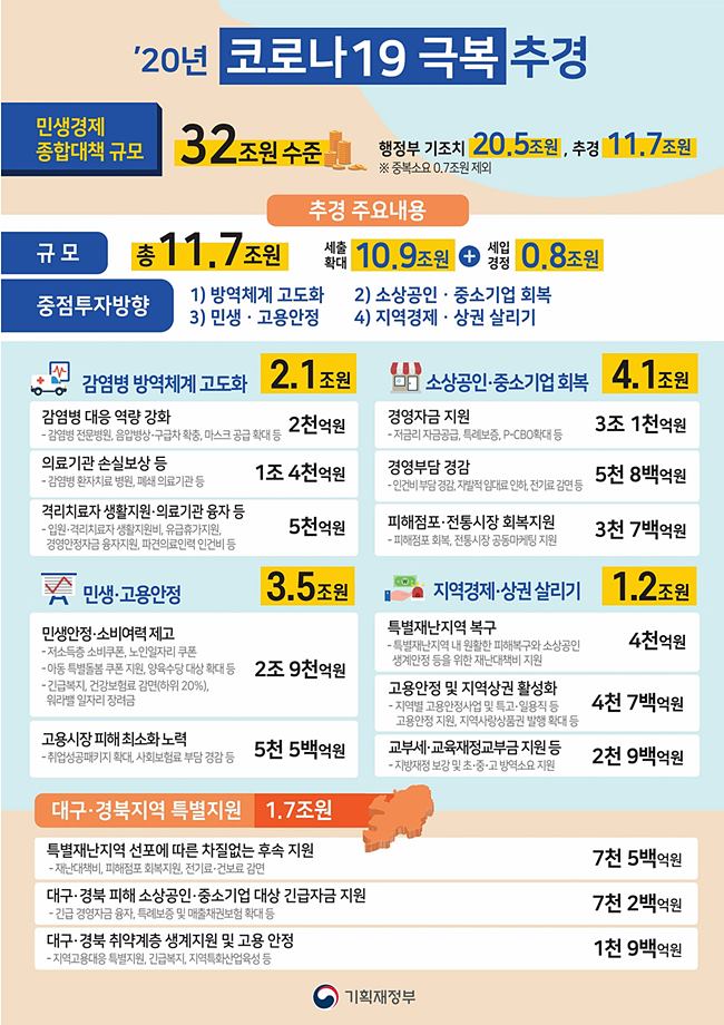 2020년 코로나 19 극복을 위한 추가경정예산안 내용,