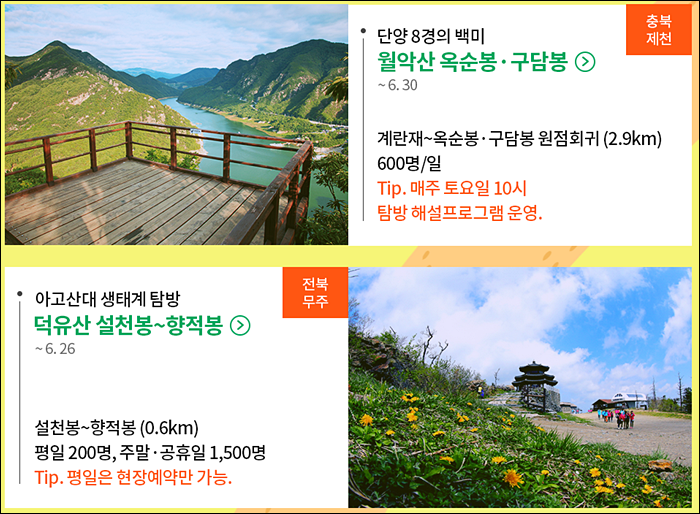 채계산출렁다리+강천산 단월야행(전북 순창), 보물섬전망대+스카이워크(경남 남해), 태백산 금대봉코스 천상의 화원(강원 태백) 도 소개할 예정이라는 군요.