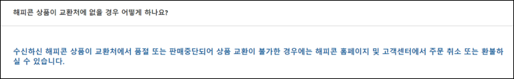 교환처에 상품이 없을 경우는 해피콘 홈페이지나 고객센터에 문의 합니다.