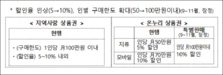 정부는 금년 계획물량 소진을 위해 8월 휴가철, 추석, 지역 가을축제시 지역사랑상품권 판매·발행을 권장하고