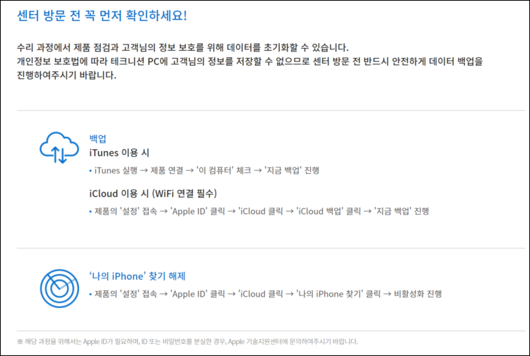 센터 방문 전 반드시 안전하게 데이터 백업을 해야한다는 점 잊지마시기 바랍니다.