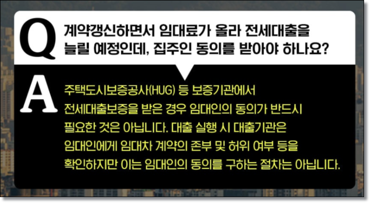 Q. 계약갱신하면서 임대료가 올라 전세대출을 늘릴 예정인데, 집주인 동의를 받아야 하나요?