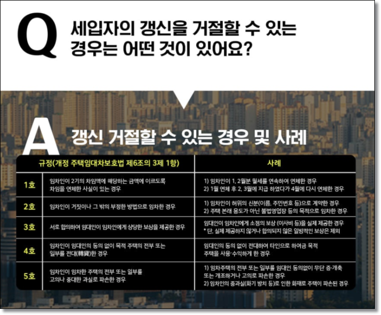Q. 세입자의 갱신을 거절할 수 있는 경우는 어떤 것이 있어요?