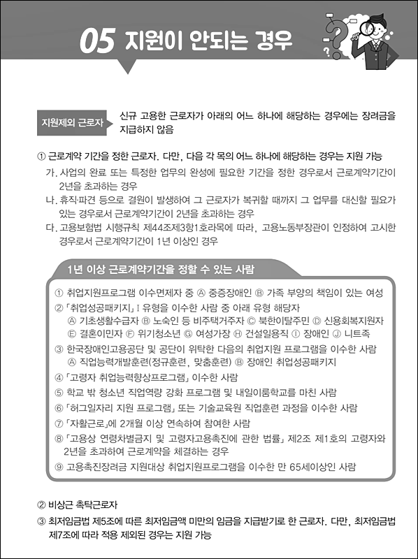 다음과 같은 근로자 고용시에도 지원이 제외 됩니다.