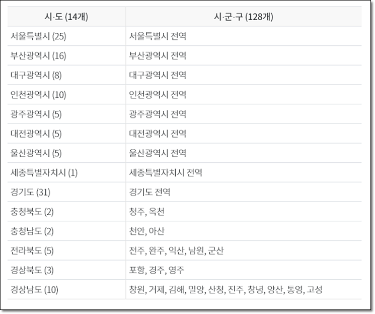 시.도 14개 시군구 128개 지역가 사업대상 지역으로 확대 되었습니다.