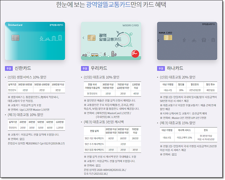 본인이 원하는 카드혜택 확인하고 신청하셔서 교통비 절감하시기 바랍니다.