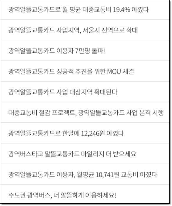 아래는 광역알뜰교통카드 관련기사내용이네요.