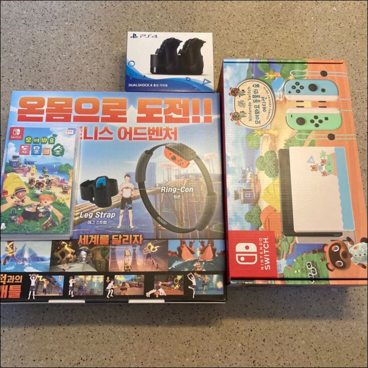 닌텐도 스위치 동물의 숲 에디션하고 링 피트 어드벤처, 동물의 숲 이렇게 샀습니다.