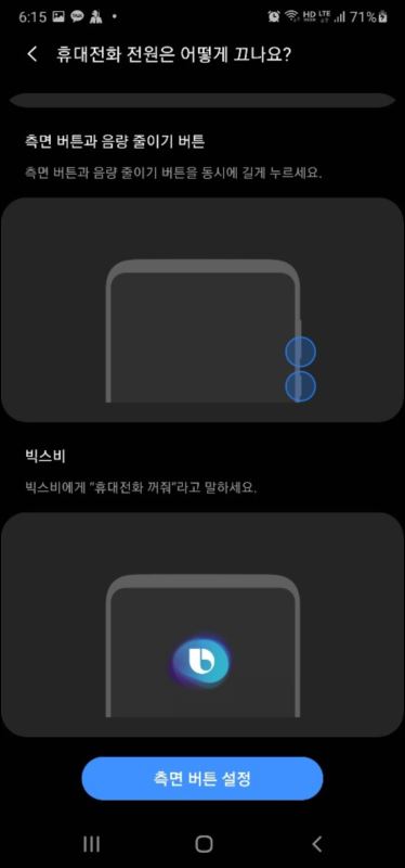 그것도 그럴 것이 초기 세팅이 빅스비로 되어 있어 아무리 눌러도 애꿋은 빅스비만 실행 될 뿐 전원 끄는데