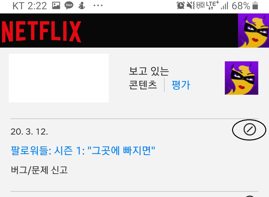 Netflix 서비스에 시청한 콘텐츠로 더 이상 표시되지 않으며