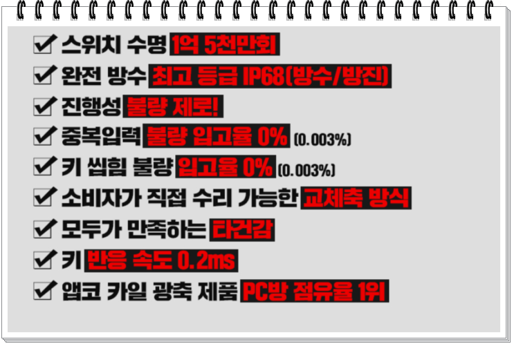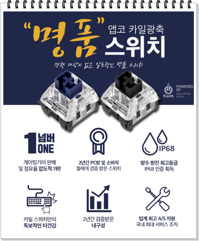 옵티컬 스위치 적외선 센서로 키인식에 오류도 없단다.