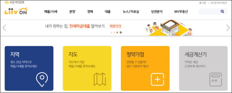 먼저 kb리브온 종합부동산세 계산기. 메인화면에서 세금계산기 메뉴를 선택하자