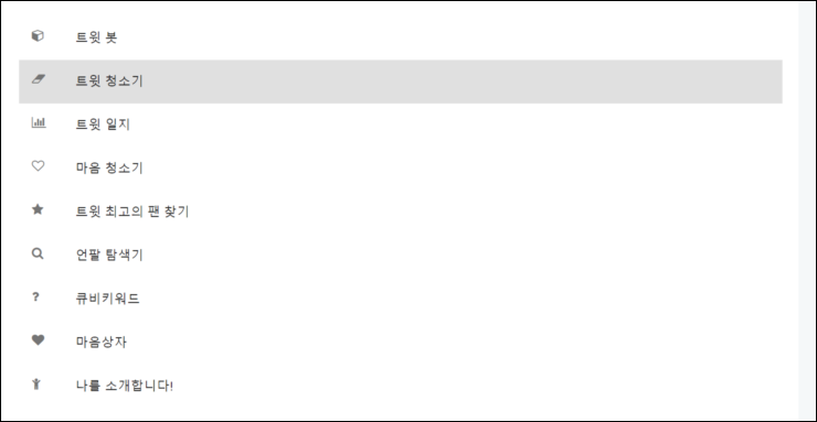 트윗 청소기 외에도 여러가지 기능이 있으니 참고 하시기 바랍니다.