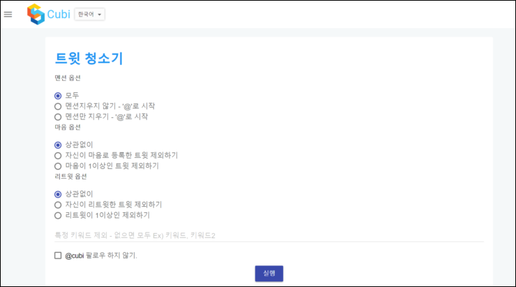 큐비 트윗청소기로 트윗 청소하기