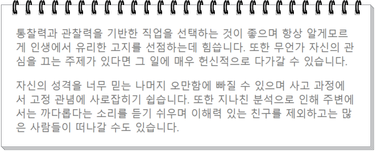 상상력풍부, 철저한 계획을 세우는 전략가형 이라고 해요~