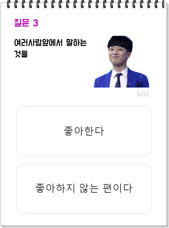 3. 마찬가지로 여러사람앞에서 말하는 것 좋아하지 않는 편이랍니다.