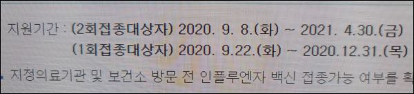 또한 2020년 7월1일 이전까지 독감 백신을 1회만 맞았을 경우 역시 2회 지원하는 점 참고하시면 좋겠네요.