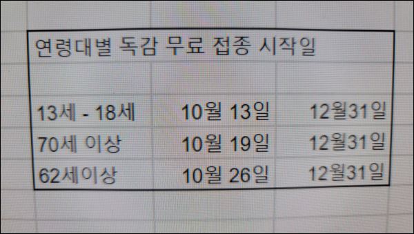 처음에 독감 무료접종 관련 발표 내용도 참고하시면 좋을 듯 합니다.