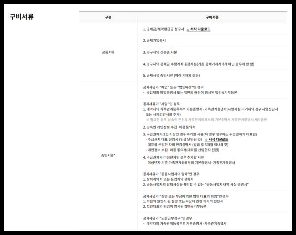 지급대상은 폐업/법인해산/공동사업자 탈퇴/사망/법인대표자 퇴임/노령 등의 경우이며