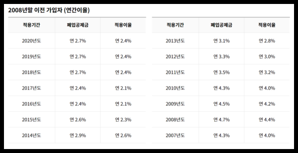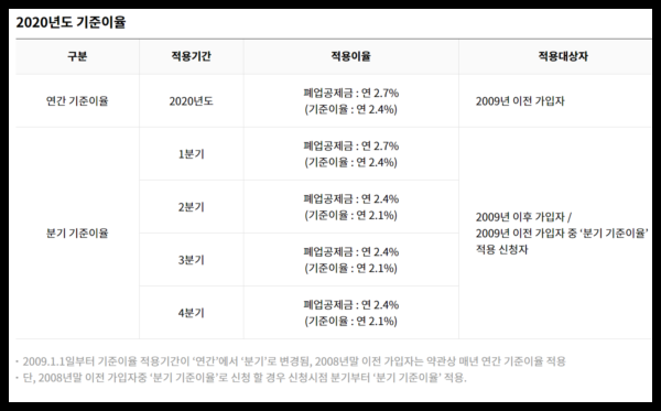 지급이율은 : 폐업이나 사망기준으로 기준이율의 0.3%~0.05% 입니다.