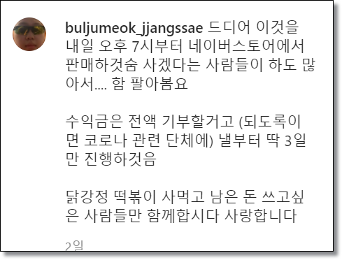 그것도 되도록이면 코로나 관련 단체에 기부하겠다며 3일간 판매를 선언하고 시작되었는데