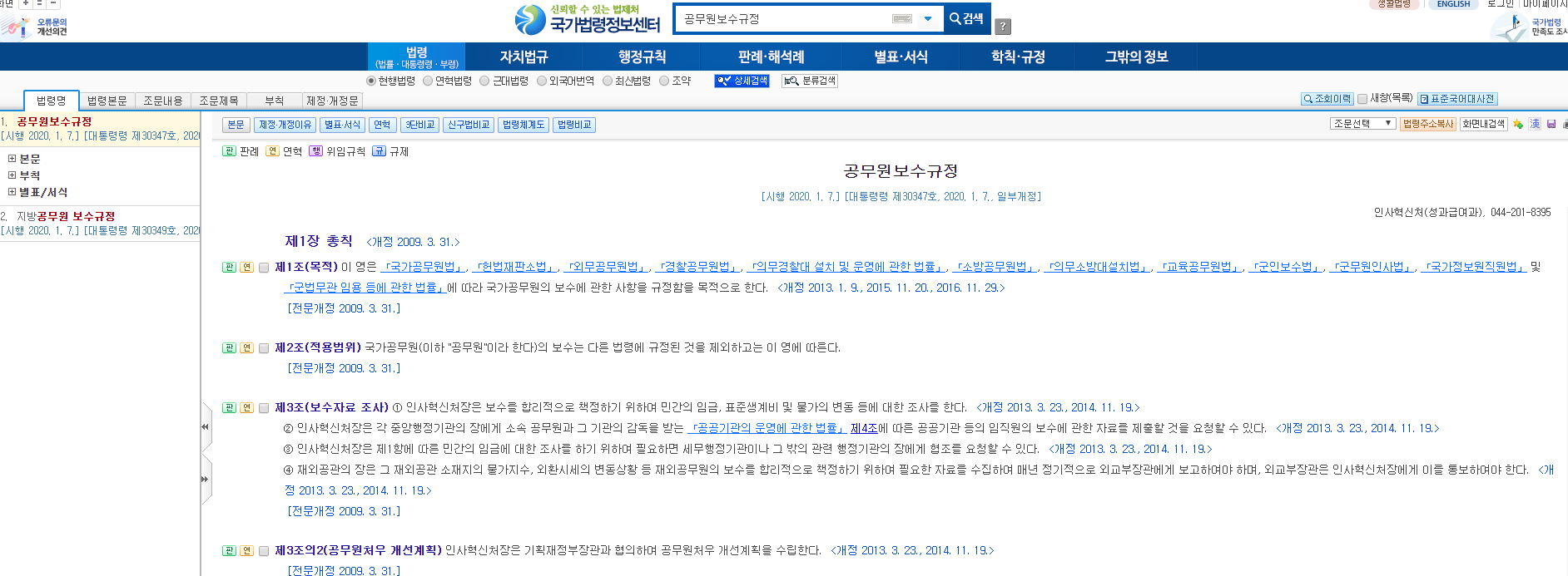 법 관련 내용이 궁금하시거나 공무원/군인 봉급 관련 자료를 찾으실 때 국가법령센터를 이용하면 자세하고 많은 정보들을 보다 정확하고 편리하게 찾으실 수 있을 거 같습니다.