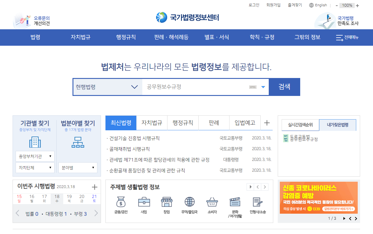 앞에서 언급했다 싶이 국가법령정보센터로 접속합니다.