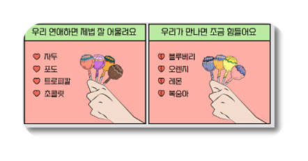 사탕테스트 딸기와 어울리는 성격은 자두, 포도, 트로피칼, 초콜릿이라 하네요.