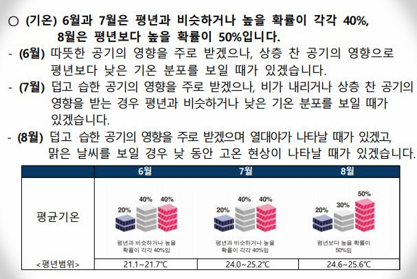 8월은 다소 더울 수 있다고 예측하고 있습니다. 더운 날씨에 물놀이 실컷하고 싶은데 마스크 쓰고 다닐 엄두도 안나고, 얼릉 나아지길 바랄뿐입니다.