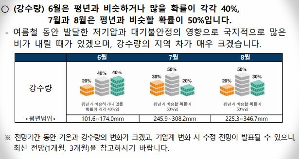 보다 자세한 내용은 2021년 여름철 3개월 전망을 통해서 보다 자세히 알아볼 수 있습니다. 제가 그 주소 남겨드릴께요. 장마는 여름장마, 가을장마로 나눠 부를수 있는데요. 보통 여름장마는 6월중순부터 7월말이 대부분이죠.