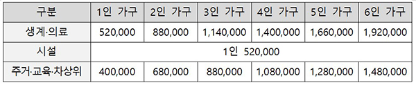 먼저 저소득층 한시생활지원 사업은 기초생활보장제도 및 법정 차상위 사업 수급 가구에 4인 가구 기준으로