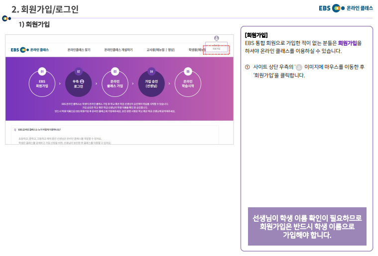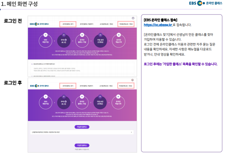 EBS 이비에스 온라인 클래스 학생 메뉴얼 을 첨부합니다.