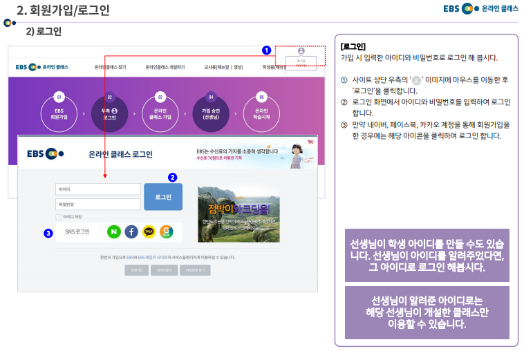 EBS 이비에스 온라인 클래스 교사 메뉴얼도 참조 하시길 바래요!