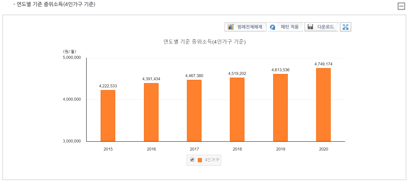 1위를 차지한 기준 중위소득은 아무래도 코로나 지원금 자격 여부 때문에 조회수가 많은거 같습니다.